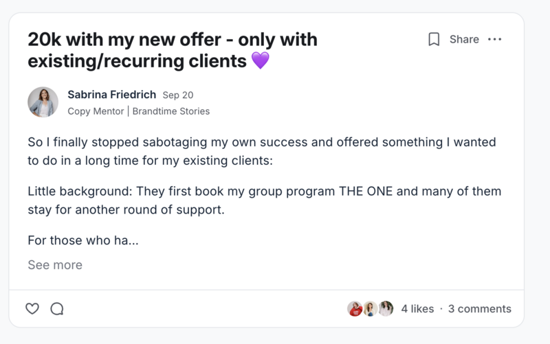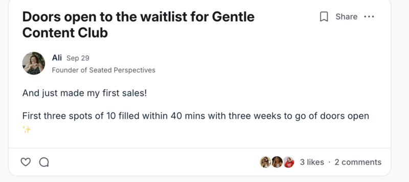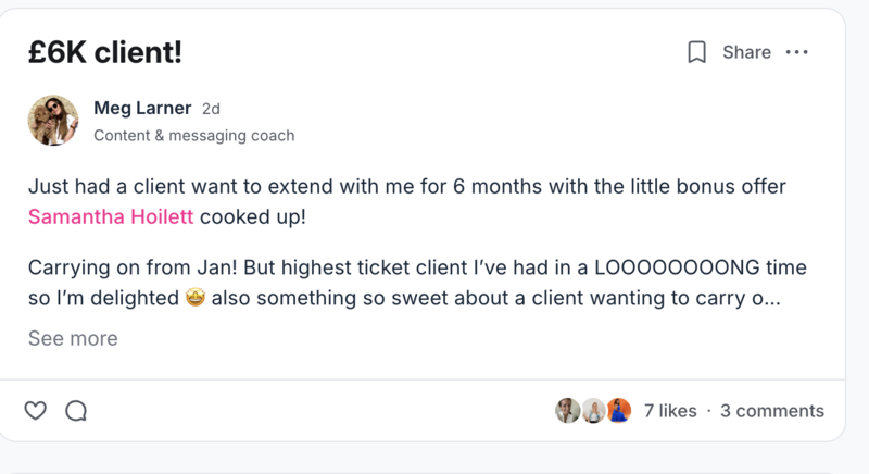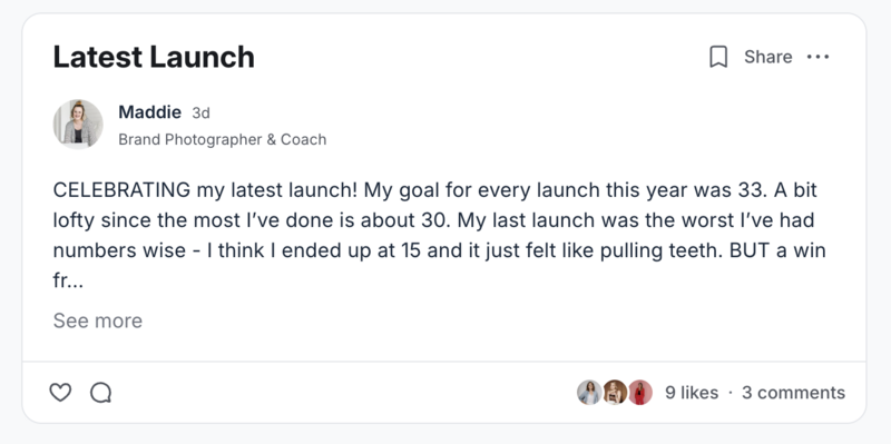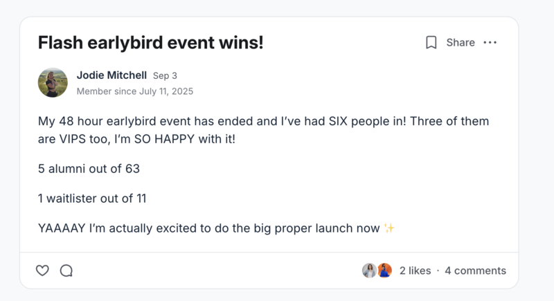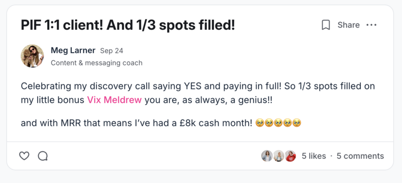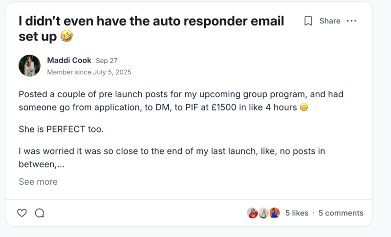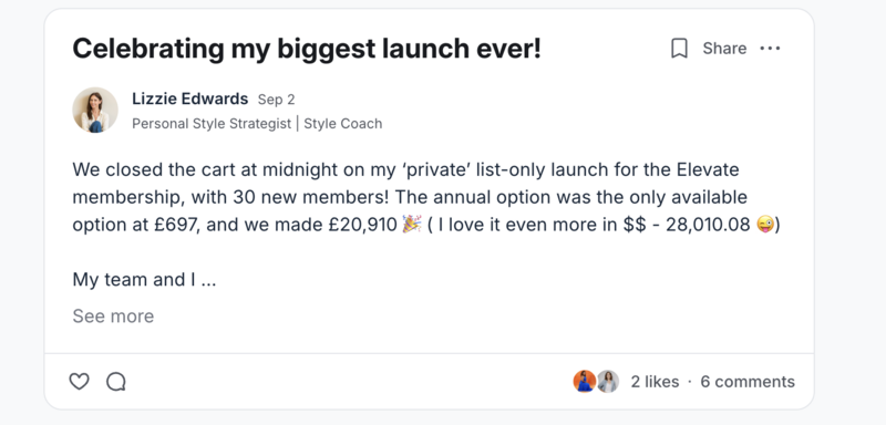 I launched another viral group program in 2024 after my maternity leave which scaled to 100 members in a year